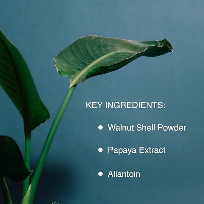 - Gentle Enzymatic & Physical Exfoliation – Papaya enzymes and micronized walnut shell powder work together to remove dead skin cells without irritation — ideal for sensitive and all skin types.