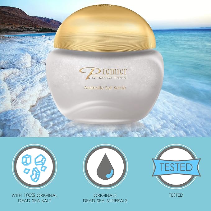 - MONEY BACK GUARANTEE: We know you will be impressed with our Dead Sea Salt Scrub and high-quality customer service so we offer a 30-day refund policy from date of purchase; please contact us if you have any concerns so we can rectify the situation quickly; BUY WITH CONFIDENCE the DEAD SEA PREMIER AROMATIC SALT SCRUB, BODY SCRUB, BATH SALTS INFUSED WITH ESSENTIAL OILS, JOJOBA OIL, VITAMIN E OIL, and get a luxurious skin appearance by letting Mother Nature’s science make you look more beautiful.
