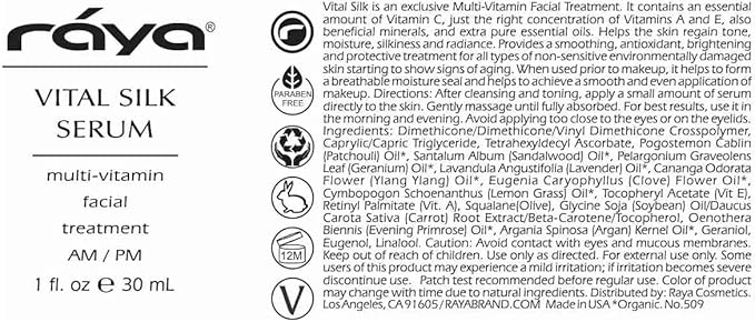RAYA Vital Silk Serum (509) | Multi-Vitamin Facial Treatment for All Non-Sensitive Skin Beginning to show signs of Age | Softens and Smooths Complexion | Protects From Environmental Damage