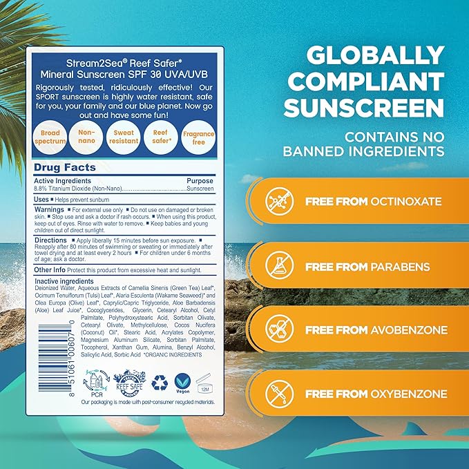 - MADE IN THE USA mineral sunscreen is safe for both your skin and our oceans. Eco-friendly packaging using sugarcane resin. This purchase includes (3) 1 oz tubes of travel size sunscreen.
