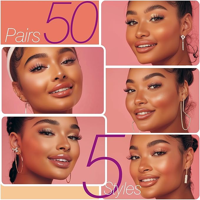 Eliace Eyelashes, (50 Pairs,5 Styles) Luxurious Faux Mink Lashes Natural Look Wispy Fluffy Handmade Cat Eye False Lash Pack, False Eyelashes Set, Fake Lashes Strips, Makeup Fake Eyelashes Pack