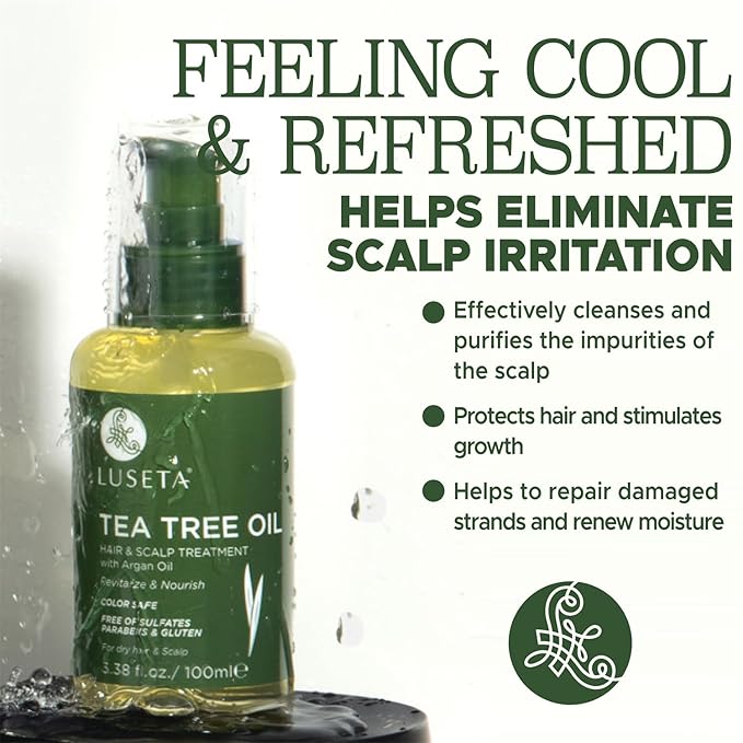 - Scalp: massage the oil onto scalp evenly. Leave 5-10 minutes for penetration. Rinse with Luseta Tea Tree & Argan Oil Shampoo and Conditioner for best result.