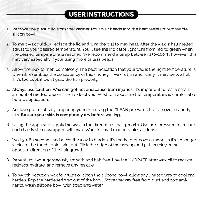 - EASY-TO-CLEAN WAX KIT: Our non-stick, silicone bowl is a better wax pot and makes cleaning a breeze. Just heat up your hard wax beads, enjoy the smooth body wax, and clean it up in no time.