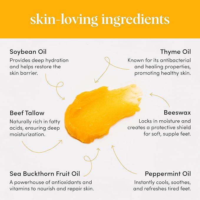 - Nature’s Healing Power for Your Feet – Handcrafted with organic Sea Buckthorn, Thyme Oil, and Peppermint to repair, refresh, and rejuvenate dry, cracked heels and rough skin.