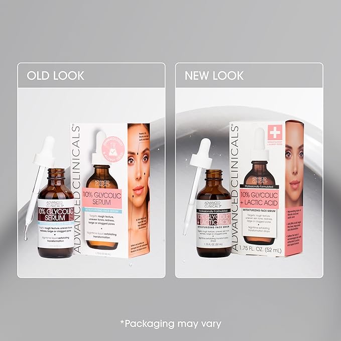 Advanced Clinicals Exfoliating 10% Glycolic Acid Serum For Face + Lactic Acid | Facial Exfoliant AHA + Salicylic Acid Serum To Improve Look Of Large Pores, Uneven Skin Tone, & Dark Spots, 1.75 FL Oz