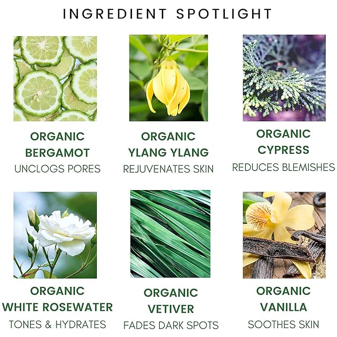 - Active Ingredients : 100% Organic Bulgarian White Rose Hydrosol, Organic Bergamot Essential Oil, Organic Cypress Leaf Essential Oil, Organic Vetiver Essential Oil, Organic Ylang Ylang Essential Oil, Organic Virgin Coconut Oil, Organic Vanilla Extract 100% Organic Bulgarian White Rose Hydrosol, Organic Bergamot Essential Oil, Organic Cypress Leaf Essential Oil, Organic Vetiver Essential Oil, Organic Ylang Ylang Essential Oil, Organic Virgin Coconut Oil, Organic Vanilla Extract
