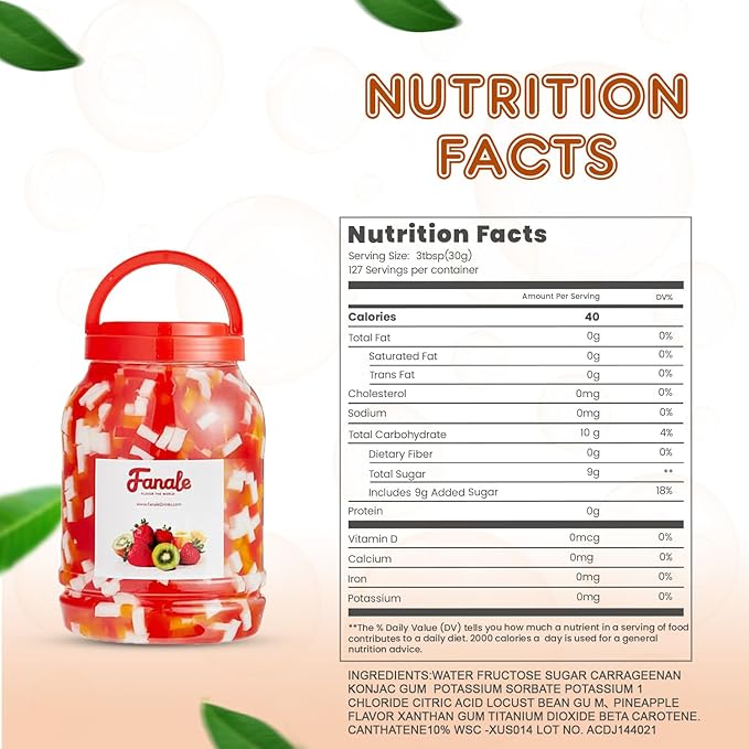 - Sweet and Exotic Flavor: Each Fanale coconut jelly boba tea variety is infused with sweet and exotic flavors that complement a range of recipes. This nata de coco jelly topping includes strawberry, lychee, blueberry, mango, sakura, green apple, coconut, rainbow, and coffee flavors, adding a distinct and delightful twist to your creations.