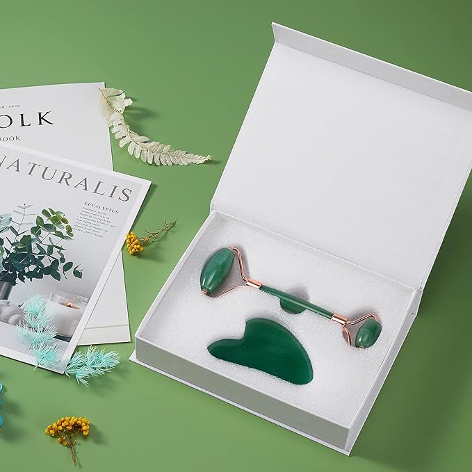 - 【Natural Jade Material】This facial roller gua sha are made of natural jade,which is crystal clear, beautiful color. The handle part of the jade roller, specially selected zinc alloy materials that will not rust to make.