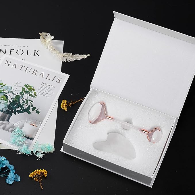 - 【Natural Jade Material】This facial roller gua sha are made of natural jade,which is crystal clear, beautiful color. The handle part of the jade roller, specially selected zinc alloy materials that will not rust to make.
