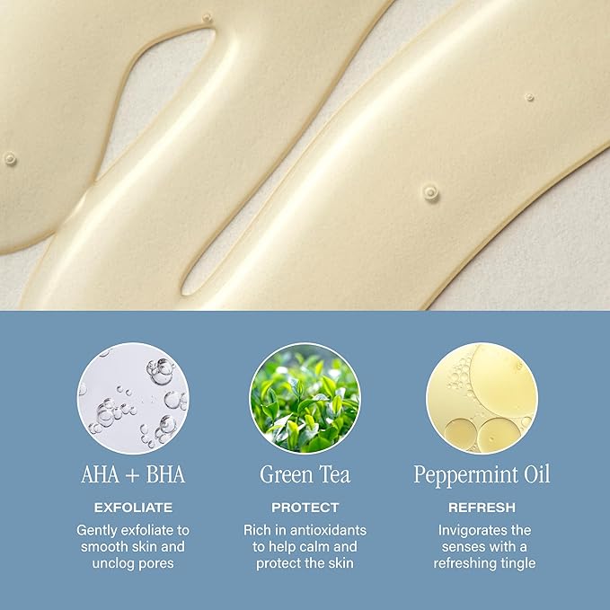 SKINN Daily Morning Face Wash, Green Tea + Mint Cleanser, 4oz - Gentle Exfoliating Facial Cleanser for All Skin Types - Formulated with Antioxidant & Botanical Oils & Salicylic Acid