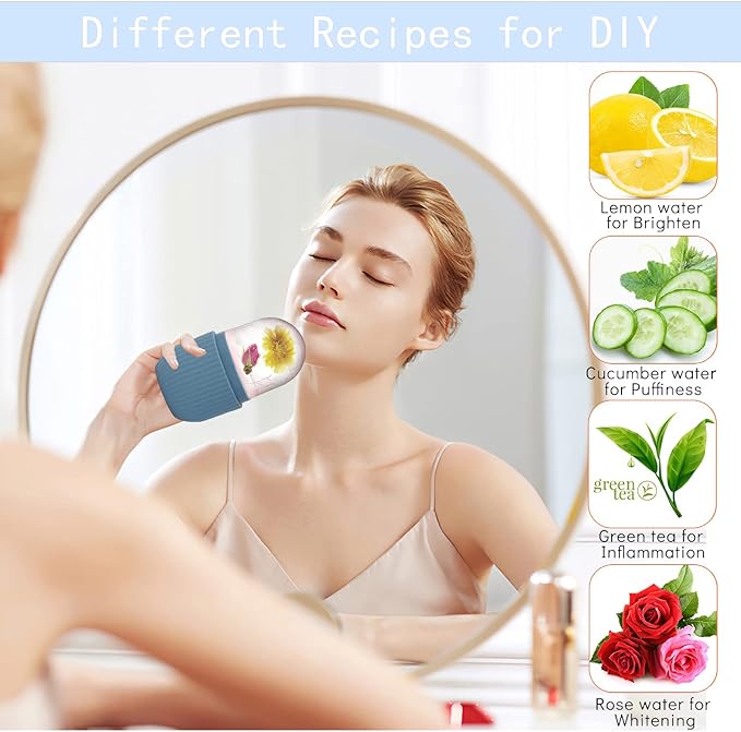 - ✅ SAVE MONEY AND VERSATILE: Refillable for a fresh and clean cube each use. Freeze alternate cube recipes,such as lemonade for whitening, green tea for inflammation, cucumber water for reducing swelling, Mint leaves refreshing and coconut for improving skin Milk.