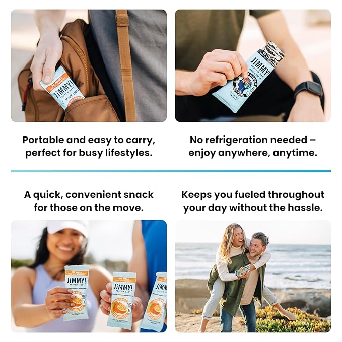 JiMMYBAR! - Sea Salt Caramel Cookies N' Cream - 19g High Protein Bars - 7g Sugar - 12 Count - 58g Health Bars - Natural Peanut Butter Core - Caffeinated Protein Bar For Energy- Hand Drizzled Chocolate