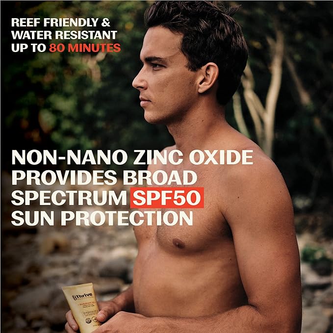 Thrive Natural Care Reef Safe Sunscreen SPF50 - Hawaii 104 Reef Act Compliant - Mineral Sunscreen Non-Nano Zinc Oxide - Vegan, (5.8 Oz (Pack of 2))