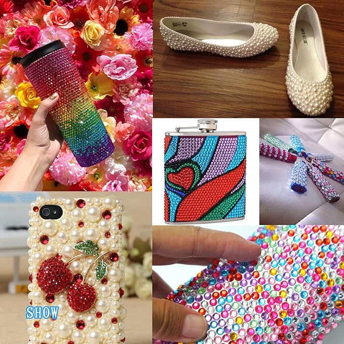 - đWIDE APPLICATION -- The Crystal Iridescent Nail Rhinestones And Flat Back Pearls Are Perfect for 3D Nail Art, Face Makeup And Handwork Such As Cell Phone Cases, Glasses, Tumblers, Bags, Guitars, Hair Clipers etc.