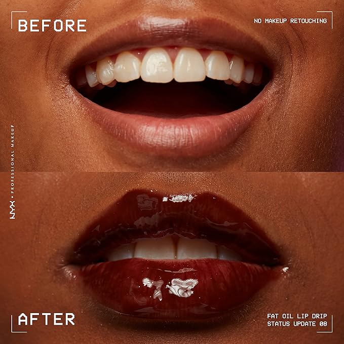 NYX PROFESSIONAL MAKEUP Fat Oil Lip Drip, Moisturizing Lip Oil Gloss, Vegan Tinted Formula, Up to 12 HR Hydration - Status Update (Rich Chocolate)