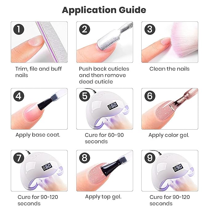 - SALON QUALITY HOME USED:Glitter jelly nude gel nail polish is good choice for use in a professional nail salon or nail starter at home.You can design your own manicure at home to show your style. Remember the gel polish needs to be cured under LED or UV nail lamp. Average for Nail Lamp 60-120 secs