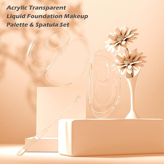 - đăReliable MaterialăAcrylic makeup mixing tray and transparent foundation spatula are made of acrylic material, the empty makeup palette is comfortable to hold, the edges are delicate and smooth without hurting hands, and the acrylic makeup spatula tool fits the curvature of the eyes, which is more suitable for adjusting makeup. easy to keep clean from blending colors and easy to clean.