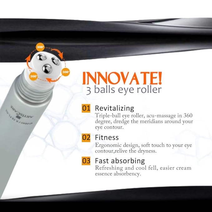 - ANTI AGING UNDER EYE CREAM ROLLER: This easy apply gel texture eye cream for dark circles & puffiness comes in its own roller; It reduces under eye puffiness and has a cooling caffeine, mint and Vitamin C infused gel formula that brightens eye skins;