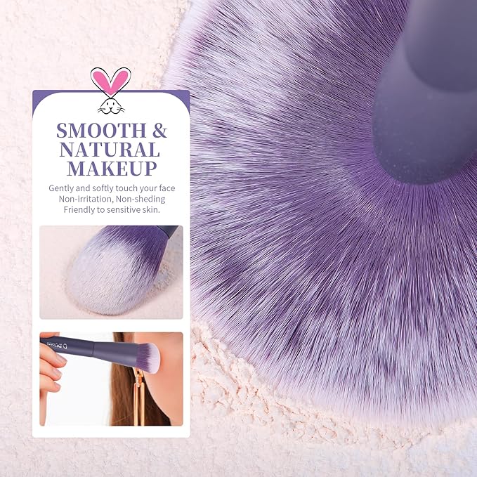 - đElegant Design, Excellent Gift: Stunning Luxury Purple handles paired with soft synthetic bristles create a visually striking, high-end aesthetic. The curved design elevates its luxurious appeal. Designed for gifting, this brush set arrives in a gift box perfect for holidays like Christmas, Valentine's Day, Mother's Day, New Year, or Thanksgiving Day. It's a thoughtful gift for women, girls, makeup lovers, brides, or beauty enthusiasts who value style and ethics.