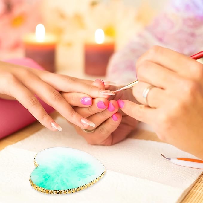 Sibba Resin Nail Art Palette Nail Mixing Palette Polish Color Mixing Plate Golden Edge Nail Holder Display Board Heart Shape Cosmetic Mixing Tools (Green)