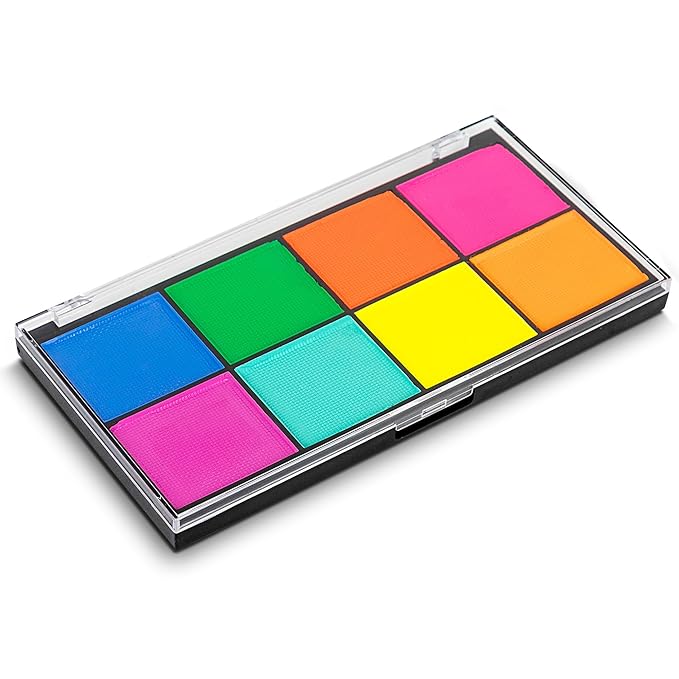 Professional Face Painting Kit - Skin Friendly Face Paint Kit - Cruelty-Free & Vegan Water Based Face Paint Makeup for Theatre, SFX and Halloween- 8 Colors 5g Each - Splashes & Spills (Neon Colors)