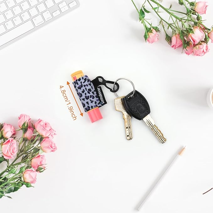4 Pack Keychain Chapstick Holder, Leopard Pattern - Elastic Band, Fits Most Standard Lip Balm, Quick-Release Clip, Unisex-Adults