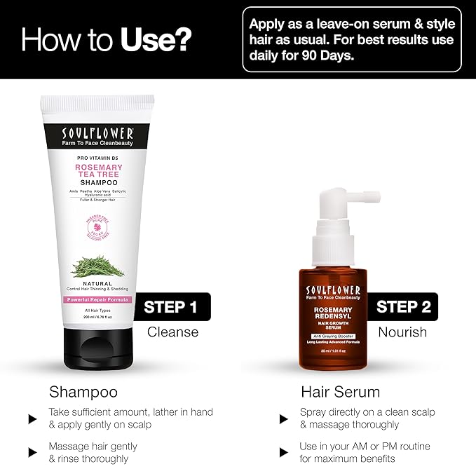 - HELPS TO REDUCE HAIR LOSS: The most essential part of your hair growth journey. This lightweight, non-greasy, non-oily, Rosemary Redensyl serum helps in concerns like slow hair growth, hair loss, thinning & uneven shedding.