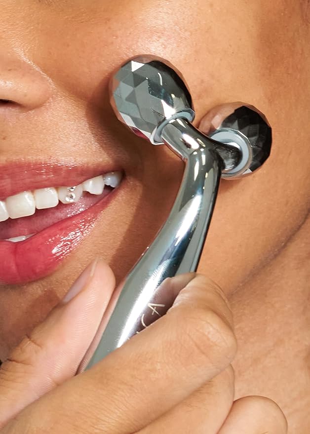 - EASE TENSION & RELAX – Stress often causes facial muscles to clench, leading to jaw tightness and headaches. This face roller massager helps you unwind as you roll away stress and muscle tension. The cool metal sensation is soothing on tired muscles – glide it across your forehead, temples, and jaw to help alleviate tension headaches and ease jaw tightness from clenching. Incorporating this calming ritual into your routine can reduce facial tension and leave you feeling more relaxed, while giving your skin a rejuvenated glow.