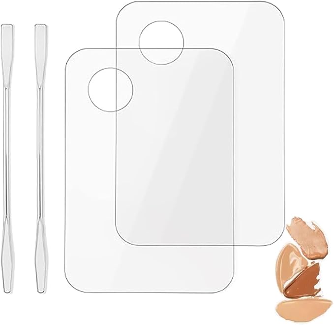 - Makeup Spatula and Palette set: This Makeup Mixing Palette Set Includes 2 Foundation Palettes and 2 stainless steel Makeup Spatulas.