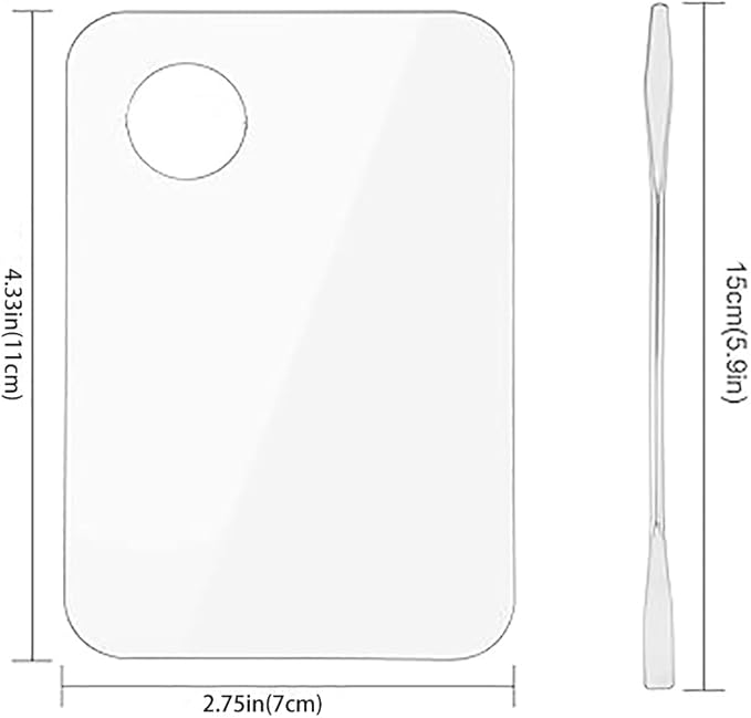 - Size: The Makeup Palette Tray is long enough to fit your hand, the size is 2.75 x 4.33inch / 7 x 11cm, Spatula length is 5.9inch / 15cm.