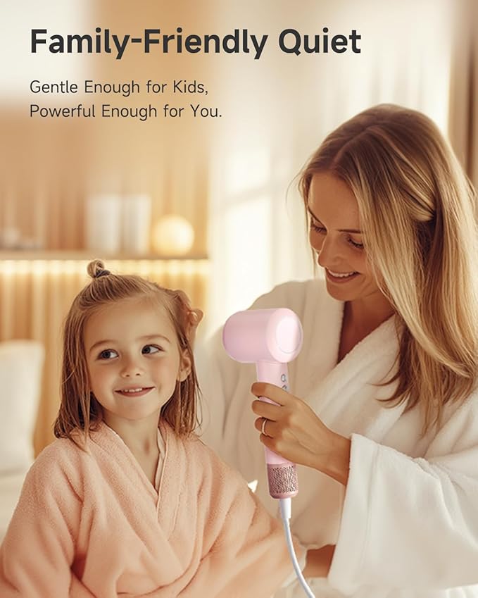 - LIGHT BUT POWERFUL: The PLUZZ professional hair dryer is equipped with a super-powerful brushless motor that can reach up to a maximum of 110,000 RPM. The high-performance motor of the PLUZZ hair dryer provides an incredible wind speed experience, almost like the force of an airplane engine. The stable airflow reaches speeds of up to 74 m/s, allowing your hair to dry quickly with high-speed airflow.