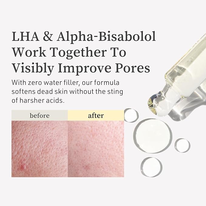- PORE CLEANSING OIL: Purifies pore with LHA and Bisabolol! LHA(Capryloyl Salicylic Acid) gently helps cleanse impurities in pores and Bisabolol ingredient helps your skin tone look clear and transparent.