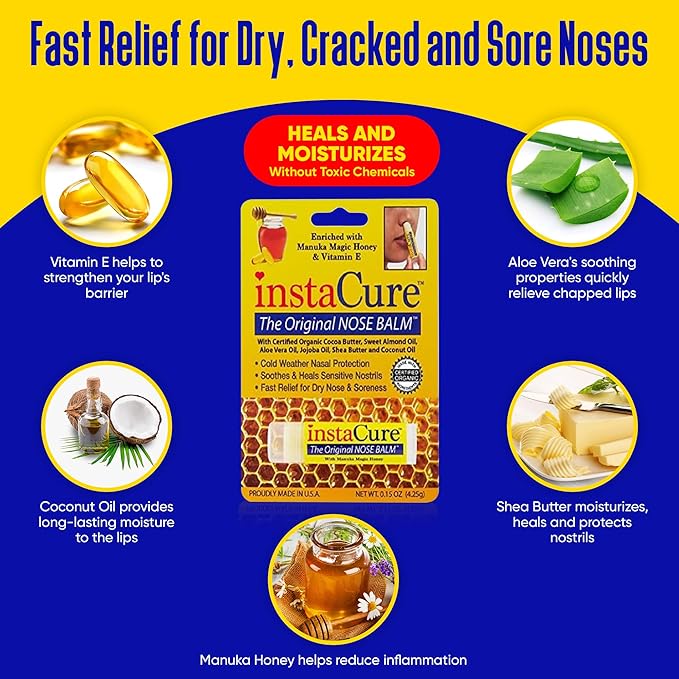 - RELIEF FOR DRY AND SORE NOSES: Enriched with Manuka Magic Honey and organic ingredients like Sweet Almond Oil and Shea Butter, dry nose relief balm is your go-to hydration stick against dryness, offering protection for sensitive noses and sinuses