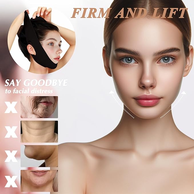 - Adjustable and Secure Design: The support strap features a strong adhesive grip atop your head, providing uniform tension to the targeted areas. Its adjustable length ensures an ideal fit for various face shapes, allowing for optimal outcomes.
