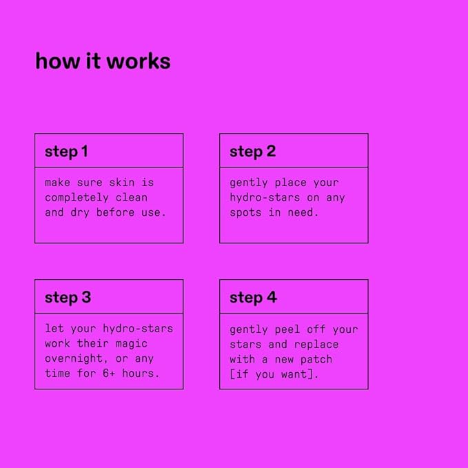 - EASY TO USE: Always apply to clean, dry skin (after cleansing and before moisturizing). Replace with a new star in the morning, or after 6+ hours.