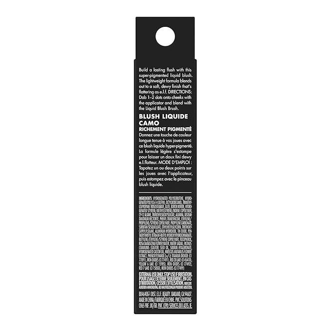 - HIGH-PIGMENT LIQUID BLUSH: Build and blend a dewy pop of color with e.l.f. Cosmetics Camo Liquid Blush. The pigment-packed formula gives cheeks a long-lasting flush that’s flattering as e.l.f.