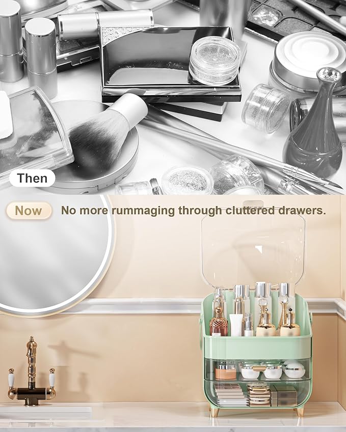 - 【Prevents Dust and Transparent 】Keeps dust and pet hair out of brushes and makeup. Keep clean and tidy. This bathroom organizer has a transparent appearance and allows you to see what is stored in the drawer. Find what you want in a second.