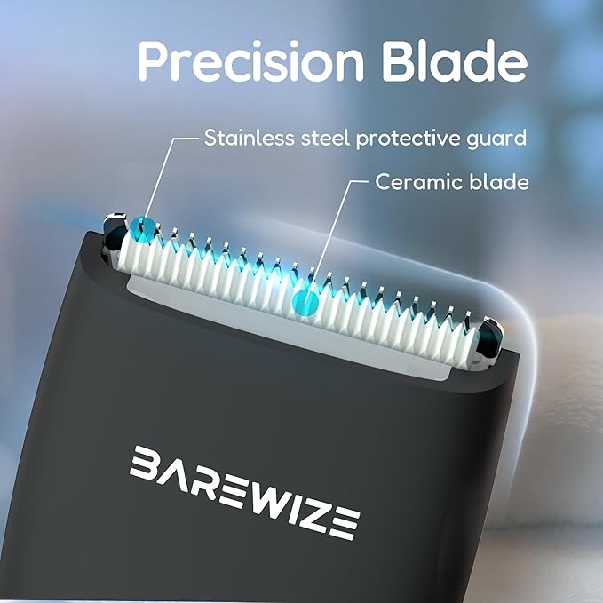 - Faster, safer and smoother trim with no need for repetitive passes - BAREWIZE advanced ceramic blade ensures precision and efficiency, reducing razor burn, ingrown hairs, and irritation on sensitive skin like the bikini line and private area.