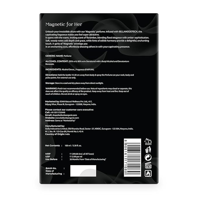 BELLAVITA Luxury Mood Collection MAGNETIC Perfume for Women 100ml | Pheromone Inspired Technology Long Lasting Fragrance | Notes of Rose, Jasmine and Cherry | Gourmet, Spicy Premium Fragrance