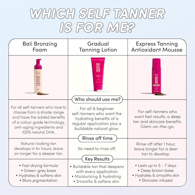 - NOURISHING TROPICAL OILS. A healthy and nourished, sun-kissed look by leaving skin soft, smooth and luminous. No mess, fuss-free tanning for tanners with every level of self-tan skill.