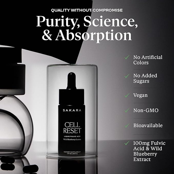SAKARA Cell Reset – Liquid Fulvic Acid Complex with Wild Blueberry & Lemon | Mineral-Rich Antioxidant Drops for Cellular Detox, Energy & Immune Support | Premium Bioavailable Formula, 1 fl oz (30 mL)
