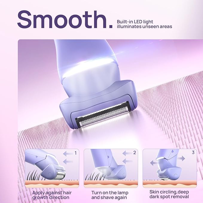 - ⥠High Efficiency, Gentle Experience: Effortlessly trim coarse body hair! A 6000RPM motor cuts through thick body hair without tugging, while minimized vibration ensures steady control on curved areas like knees. The optimized blade angle follows natural body curves for smooth results on knees and private areas â no redness or bumps (As body hair varies, we recommend trimming longer hair short before shaving).