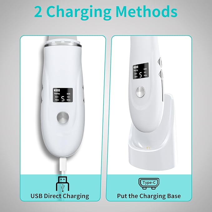 - 【Dual Charging Options & LED Display】Charge the spatula either on its base or directly via USB. The LED display shows battery life and operational mode, giving you the flexibility you need for your skincare routine. (Note: For safety, do not use while charging.)