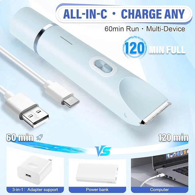 - âĄ90-Minute Battery Life, USB Charging - Enjoy an uninterrupted shaving experience with our powerful and long-lasting battery. The bikini trimmer provides up to 90 minutes of cordless use and conveniently charges via USB, allowing you to stay active anytime, anywhere