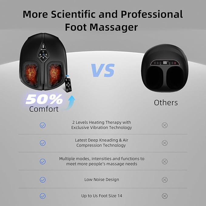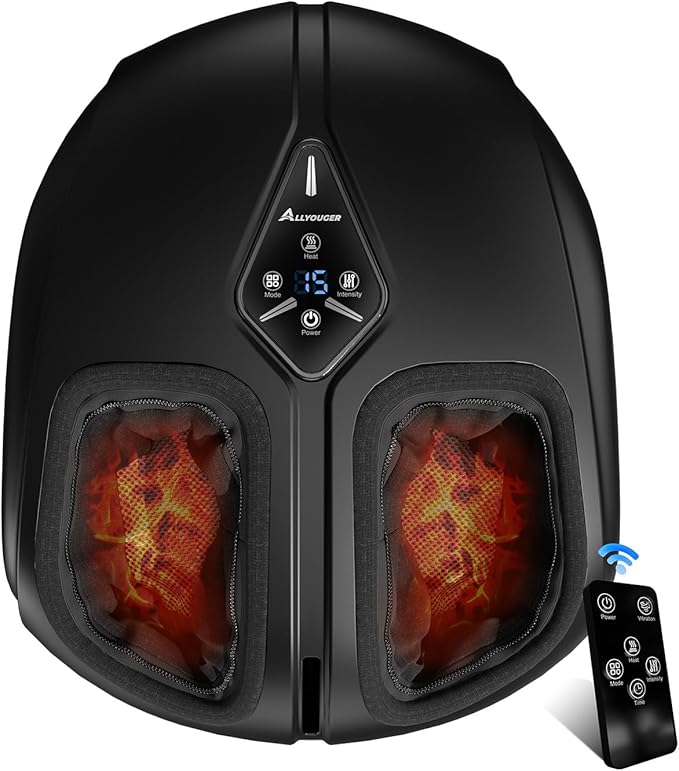 - Professional Foot Massage: The ALLYOUGER Foot Massager is meticulously designed with input from over 500 physical therapists. Its unique deep kneading and 6D compression technology precisely target specific acupoints, enhancing foot massage comfort by 50%