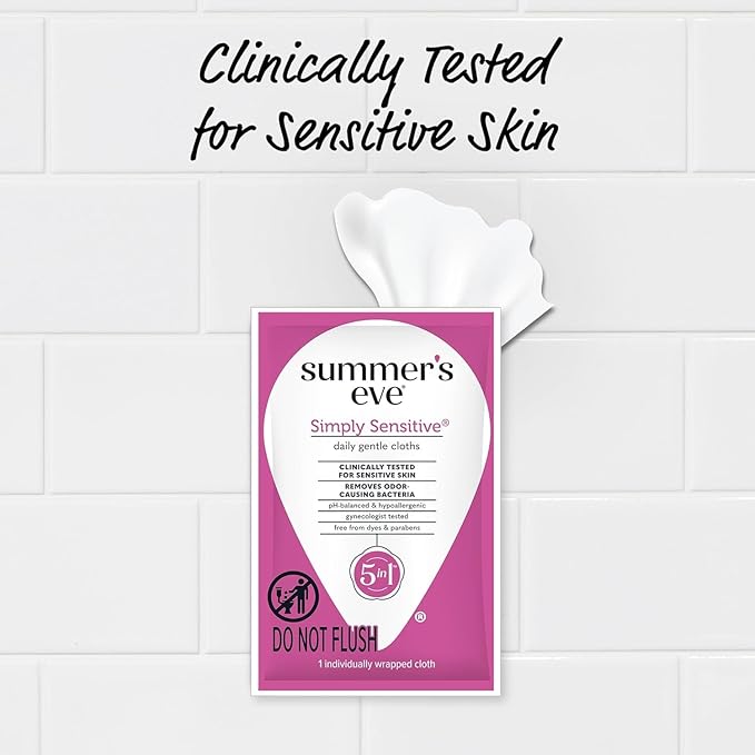 - Summer’s Eve Simply Sensitive Daily Gentle Feminine Wipes removes odor-causing bacteria