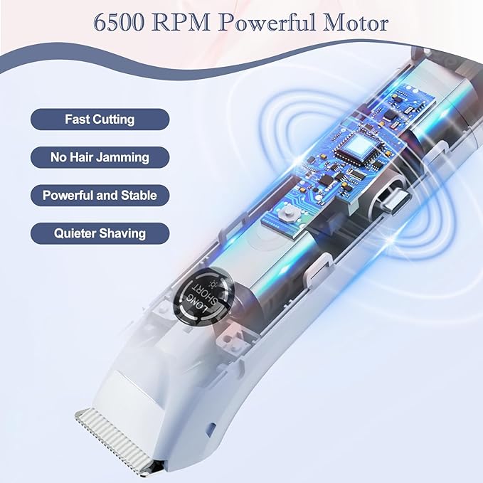 - âšăUnique DesignăOur electric razor for women comes with a built-in LED display that clearly shows when the âLONG / SHORTâ upper and lower heads are working and when the LED light is on. The built-in LED light clearly illuminates the skin surface, allowing for precise shaving of every hair even in dim conditions. The charging port of our body razor is equipped with a waterproof silicone plug that prevents water from entering the charging port and damaging the bikini shaver during wet use