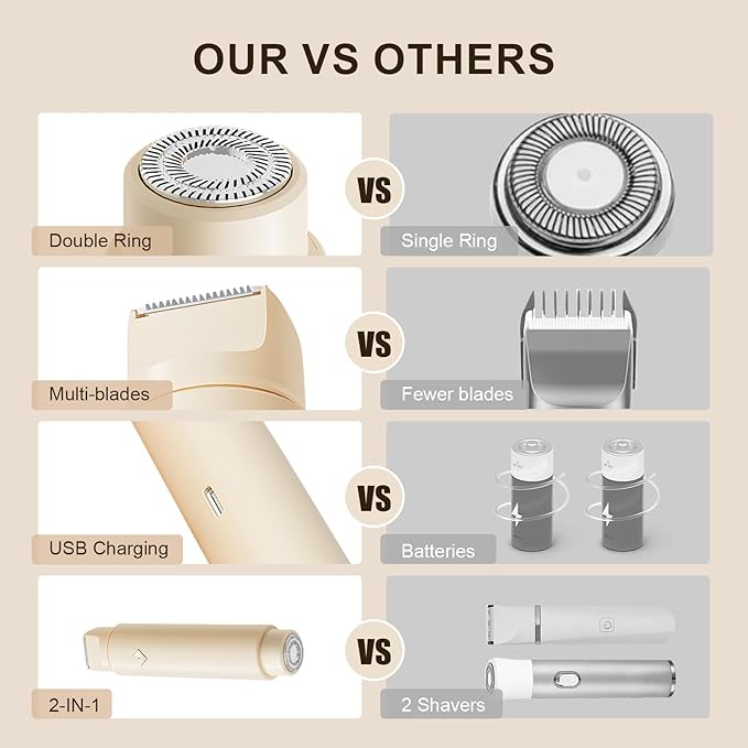 - 【2-in-1 Dual Electric Razors for Women】Anwezen lady shaver features a dual head design for precise hair removal on the face, body, and bikini area. No need to switch heads frequently—perfect for achieving smooth skin effortlessly with one versatile device