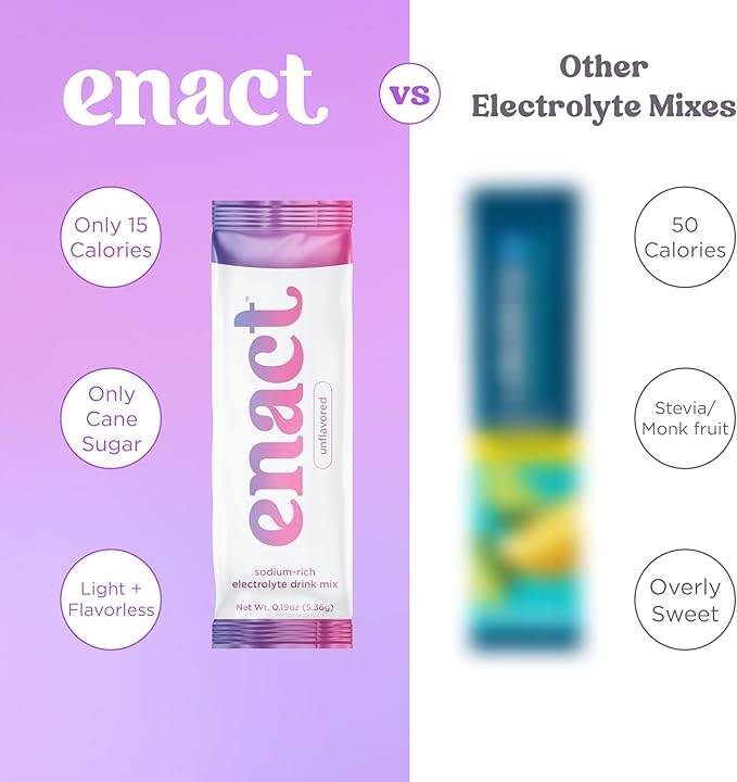- FLAVORLESS AND FLEXIBLE: Enact is intentionally unflavored to mix easily into coffee, smoothies, or your favorite drink. Dissolves completely in water or any other daily beverage, creating an almost flavorless addition that's easy to consume daily. Basic Preparation: Add one packet to 16-32 oz. of water. Mix thoroughly until dissolved. Start with less water (16 oz.) if you prefer a stronger flavor, or more water (32 oz.) to dilute the saltiness.