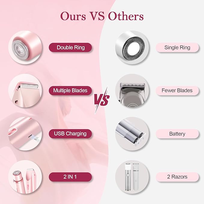 - đăSkin-Friendly DesignăThe hypoallergenic stainless steel blades of the womens electric razor provide a gentle shaving experience, and the precision-polished blades can easily shave a variety of lengths of hair, allowing you to shave faster and more carefully, reducing the risk of nicks and cuts. Enjoy silky smooth results without any irritation